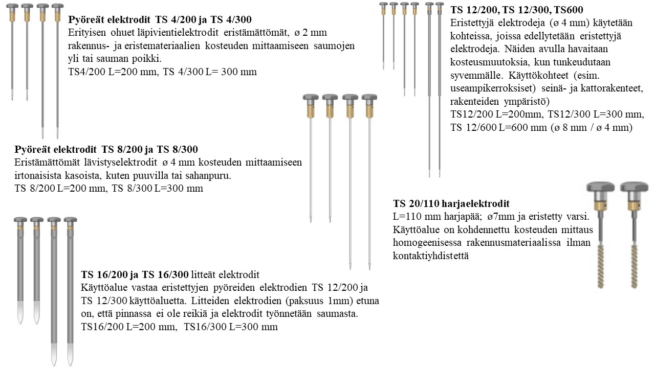 Eristettyjen elektrodiparien avulla havaitaan kosteusmuutoksia, kun tunkeudutaan syvemmälle. Käyttökohteet (esim. useampikerroksiset) seinä- ja kattorakenteet, rakenteiden ympäristö.