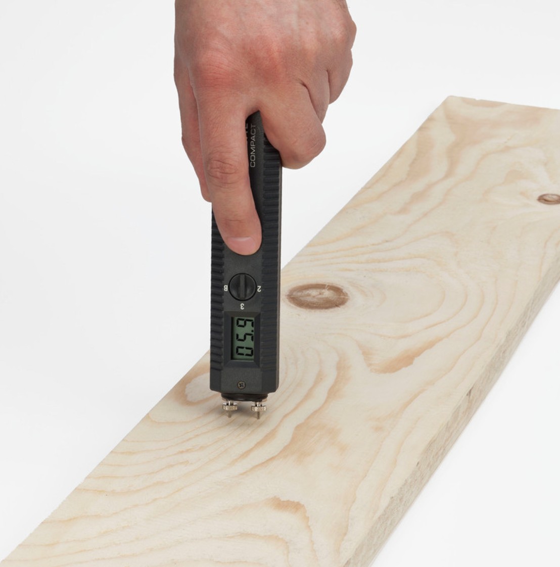 - 3-numeroinen näyttö; mitta-alue puulle 5–20%.
