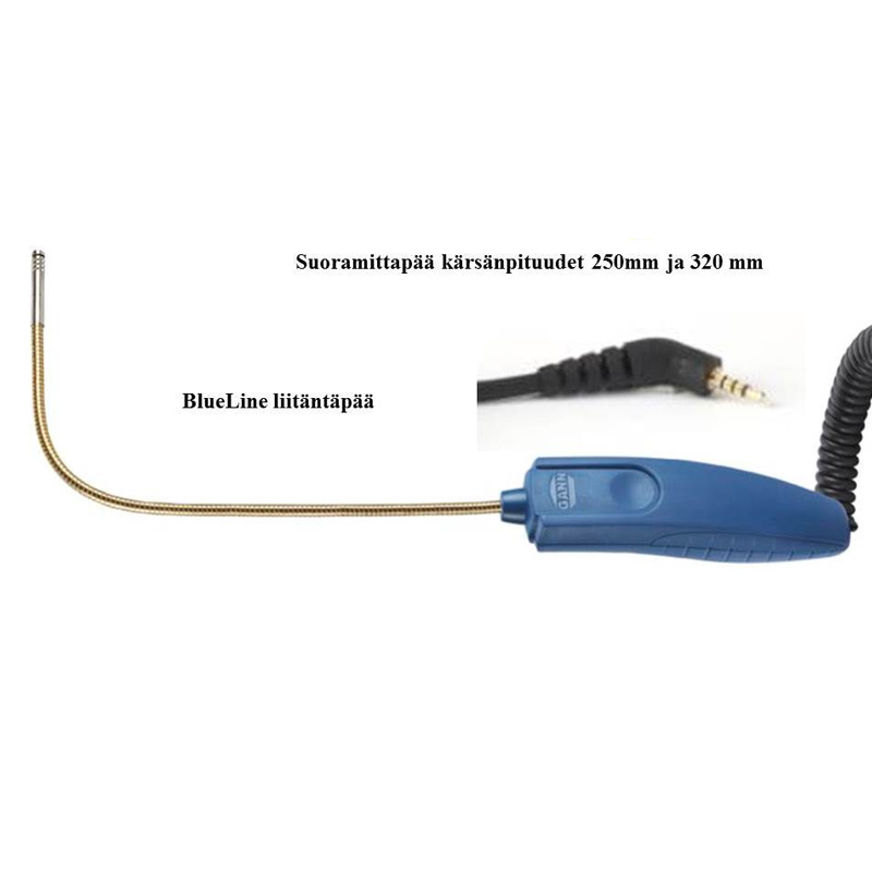 Joustava anturiputki (”hanhenkaula”) mahdollistaa ongelmattoman ja mukavan mittauksen vaikeapääsyisissä paikoissa.