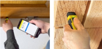 • Materiaalikosteusmittari, joka mittaa puun ja rakennusmateriaalien kosteuden älypuhelimen MultiMeasure Mobile -sovelluksella vastusmittausmenetelmää käyttäen.​