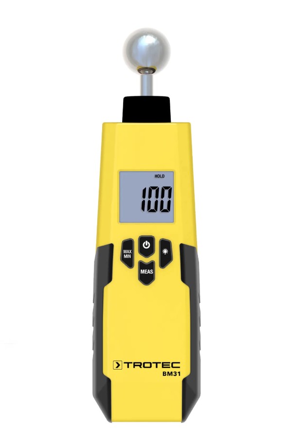 Trotec BM 31 kosteusilmaisin. Elektroninen kosteusilmaisin, jolla saadaan nopeasti ja vaurioita aiheuttamatta selville kosteuden leviäminen pinnan läheisiltä alueilta, esim. seinissä, lattiassa tai sisäkatossa.