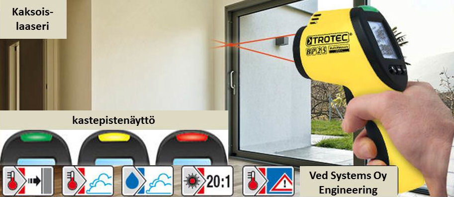 - Pisteen halkaisijan näytön mittaaminen kaksoislaserosoittimella