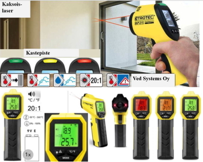 - Kontaktiton pintalämpötilan mittaus infrapunalla -50 ° C – 260 ° C
